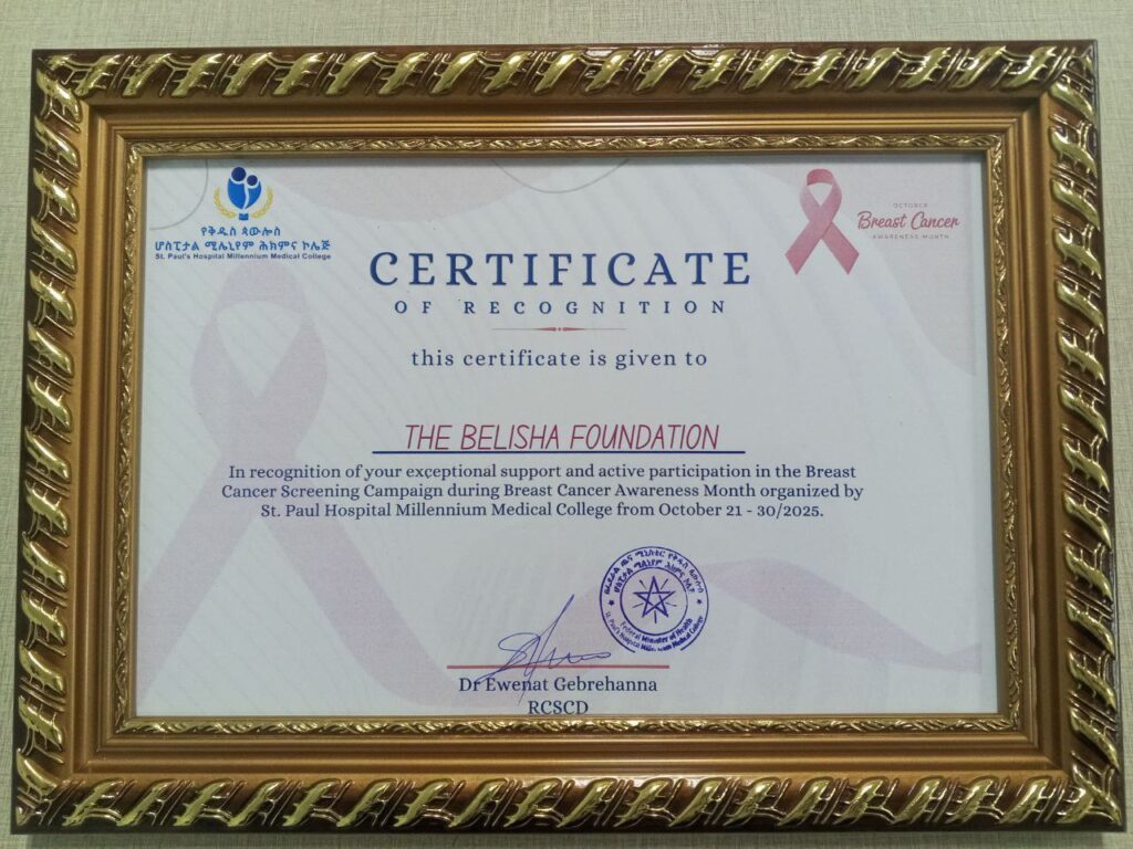 The Belisha Foundation team was warmly welcomed by the leadership and dedicated professionals of St. Paul Hospital for a fruitful discussion on strengthening collaboration in cancer awareness, screening and treatment. We are deeply grateful for the hospitalโs appreciation of the Foundationโs contributions so far and for the open, forward-looking discussion on future engagements.